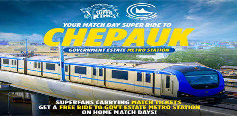 In a special move for IPL fans, Chennai Metro Rail will offer free metro travel to spectators attending the Chennai Super Kings