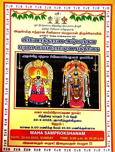 Maha Samprokshanam to Be Held at Anna Nagar Temple on April 20