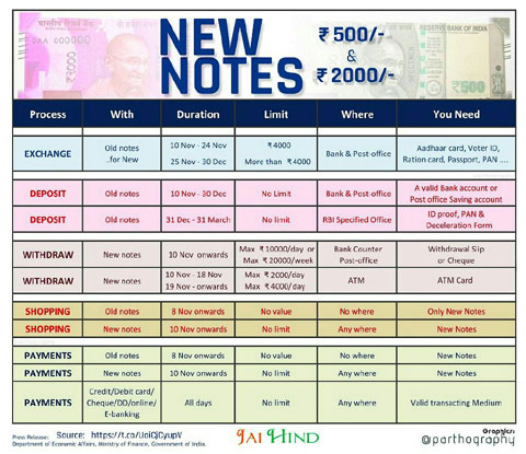 The Reserve Bank of India has announced that currency notes of the denominations Rs. 500 and Rs. 2000 will be available from today (Thursday, 10th November). These Rs. 500 and Rs. 2000 currency notes.