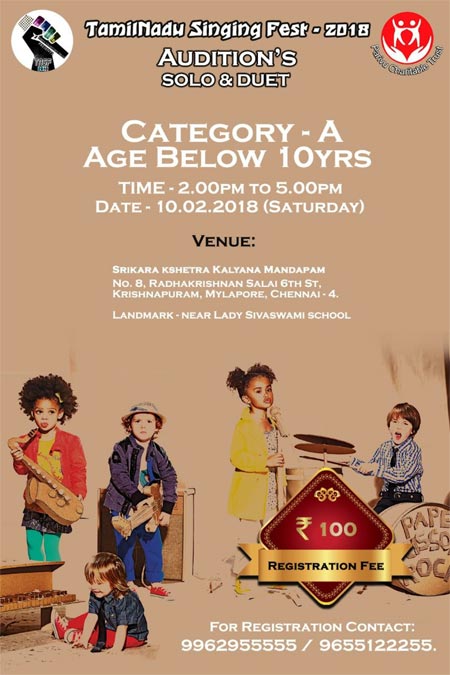 Parivu Charitable Trust presents Tamil Nadu Singing Fest 2018 - Auditions, Registrations open now.