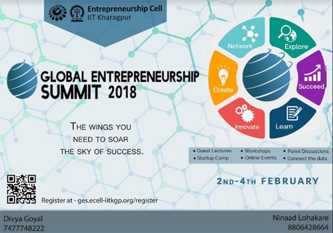 Entrepreneurship Cell IIT Kharagpur presents Global Entrepreneurship Summit-2018 (scheduled: 2nd-4th February, 2018), one of its flagship events and the biggest entrepreneurial platforms.
