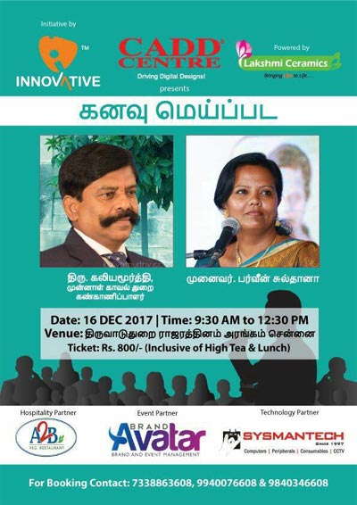 KANAVU MEIPADA - presented by Two Eminent Tamil speakers: Ms.Parveen Sultana & Mr.A.Kaliyamoorthy are coming to help you make your dreams come true at the most awaited event.