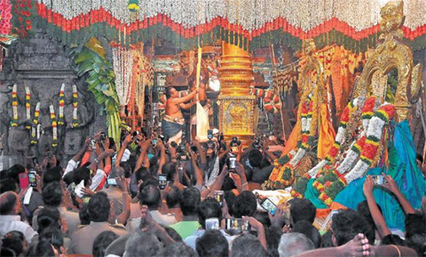 Sales of gold dollars at Tirupathi temple on Akshaya Trithiyai