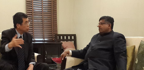 The global Chairman of Media Tek Shri M. K. Tsai and his team met the Minister for Communications and IT Shri Ravi Shankar Prasad in New Delhi.