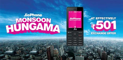 Here is Monsoon Hungama from Reliance Jio. This is an exchange offer where customers can grab a JioPhone at price as low as Rs 501. For this, they can get any of their old phone of any random brand.