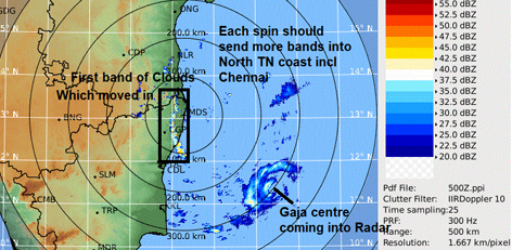 Low shear on its path and with ideal SST, Severe Cyclone Gaja is not expected to Weaken and instead going to cross between Cuddalore and Vedaranayam as a strong Cyclone with winds clocking 100-120 km/hr.