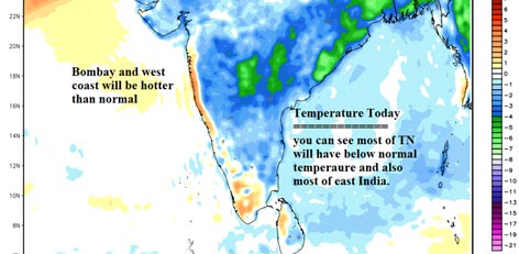 Starting from Today, for next one week Tamil Nadu is going to be less heat (below normal Day Temperatures) and Rains in South and West Tamil Nadu for next one week.