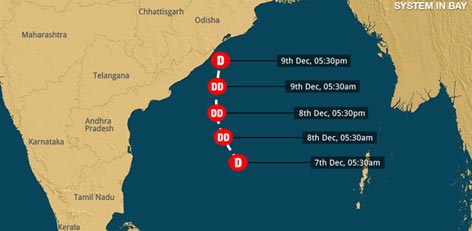 The Depression over southeast Bay of Bengal & neighbourhood moved north-northwestwards with a speed of about 20 kmph during past 6 hours and lay centred at 1130 hrs IST of today, the 07 December, 2017.